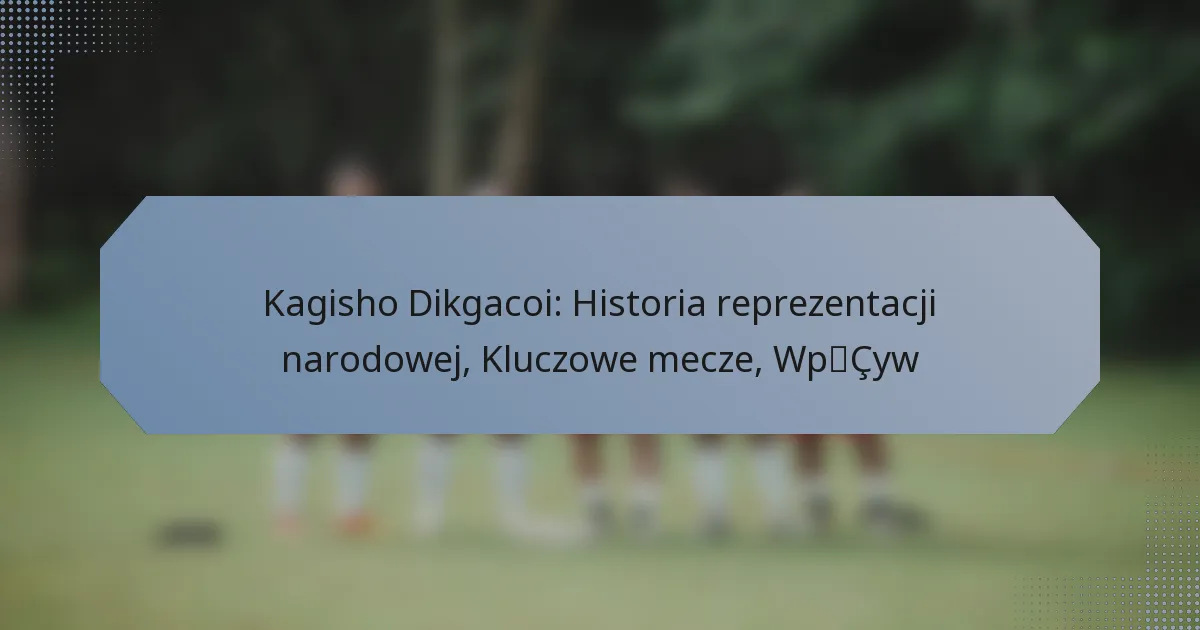 Ogólnie rzecz biorąc, występy Dikgacoi w tych kluczowych meczach nie tylko wpłynęły na wyniki gier, ale także odegrały kluczową rolę w kształtowaniu tożsamości i przyszłości reprezentacji.